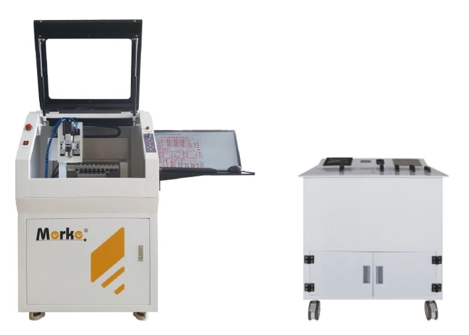 (1)用途:适用于实验室小批量、快速制作电路板。具有钻孔、图形线路铣制、图形轮廓透铣、制作盲孔盲槽等加工能力。可用于数字、模拟及数模混合电路板,射频、微波电路板及PVC、有机玻璃、铝质材料的面板、铭牌制作;可以刻制聚酰亚胺柔性材料,在微波电路上挖盲槽;可以准确控制深度雕铣材料,对已装配元件的电路板进行修理,分切。